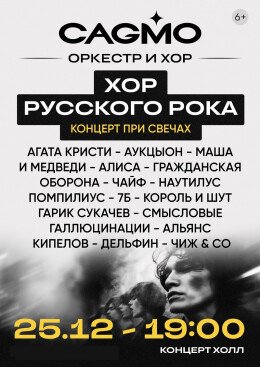 CAGMO представляет новую концертную программу по музыке известных русских рок-групп — «Хор Русского Рока» в исполнении оркестра и хора при свете свечей.